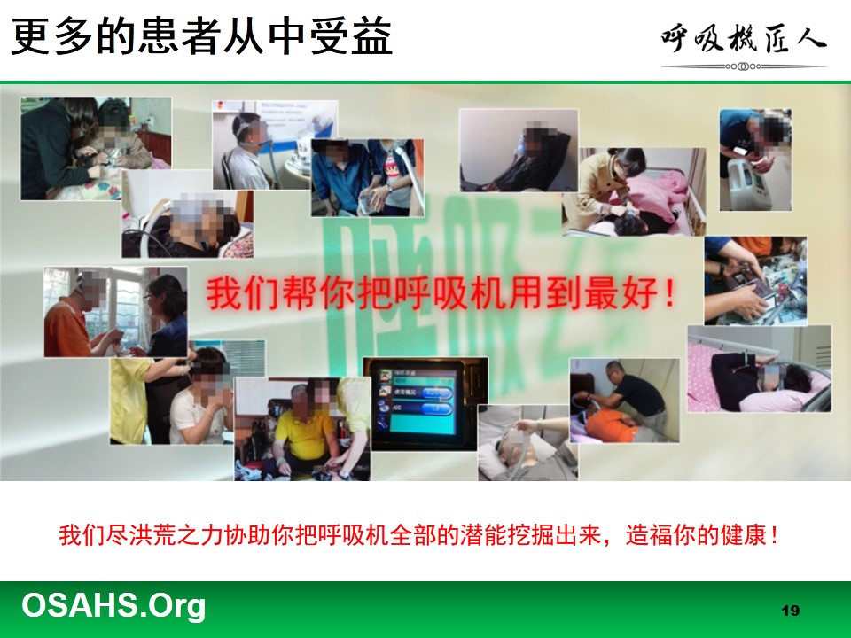 我们一直认为,要想把家用呼吸机真正的用好,需要呼吸机服务商与患者之间齐心协力,积极配合。一方面,每个患者的情况都是不一样的,都需要服务商认真对待;另一方面,机器虽然有进步,但是更需要患者朋友自己有积极的治疗态度和决心。我们认为两者中,呼吸机服务商的因素更重要,服务商首先要具备一种社会责任心,呼吸机不是普通的产品,它是一个治疗设备,是治疗疾病的。所以,不仅仅要有商业上的考量更需要有人文精神维度上的考量。